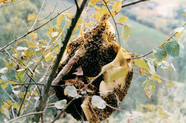 Sciami di api in natura.