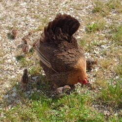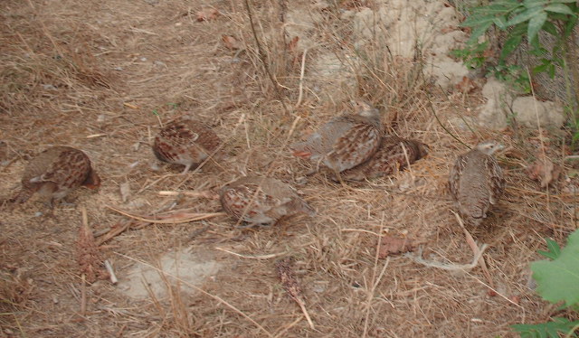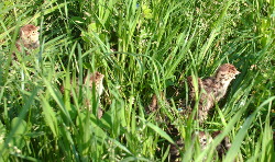 Chioccia bandamina a spasso con pulcini di starne appena nati, la crescita e la formazione della brigata.