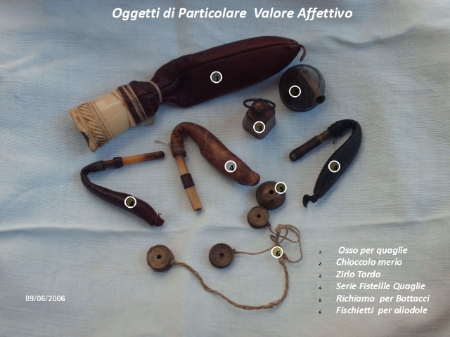Preziosi richiami manuali e a bocca, a dispetto dei richiami elettronici che offendono la dignità del cacciatore.