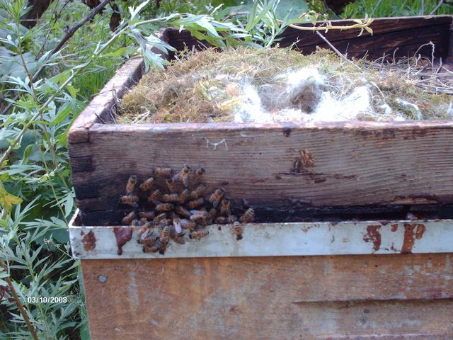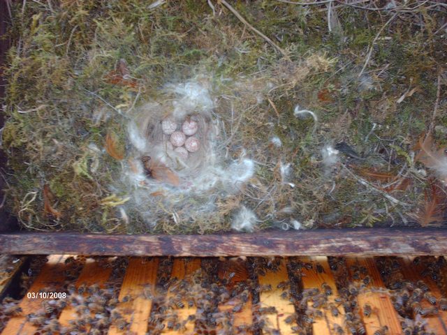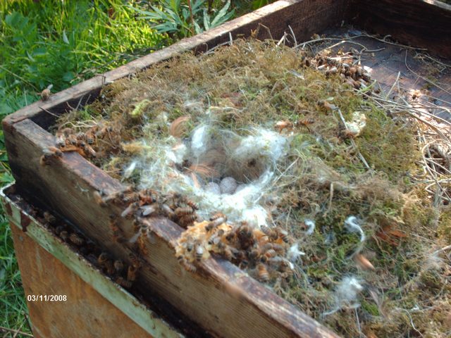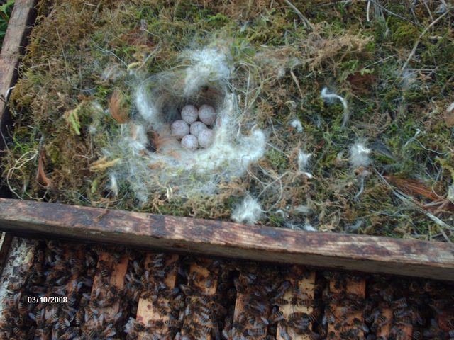 Un nido di Cinciallegra su un coprifavo di api